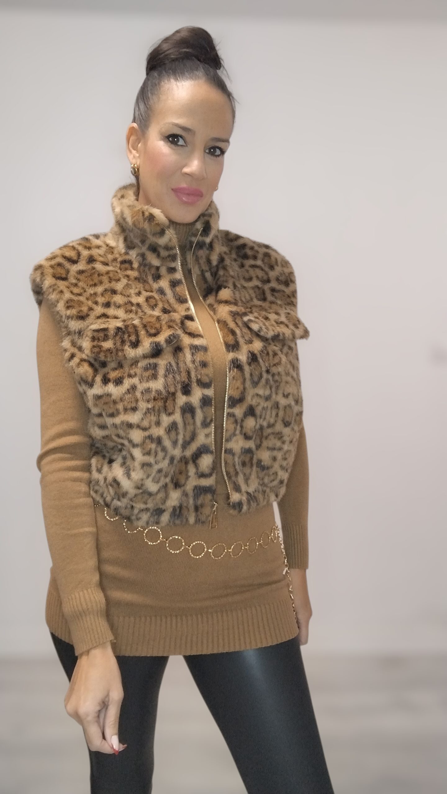 Chaleco con cremallera de pelito en estampado animal print con forro interior